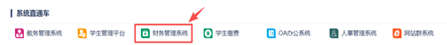 一、进入学校官网,找到“校园直通车”,点击“网上办事大厅”,进入“财务管理系统”。